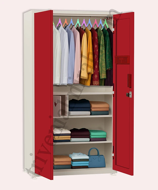 Step into a world where style meets structure. This vibrant maroon and white wardrobe is designed for those who value both aesthetics and functionality. With a secure built-in safe, spacious drawers, and a playful mix of colorful hangers, it’s more than just storage—it’s a statement.