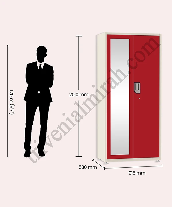 The built-in mirror adds a touch of sophistication while serving everyday practicality. Framed in a bold accent color, it enhances the wardrobe’s visual appeal and offers a convenient solution for quick styling checks. Thoughtfully positioned inside the door, it maximizes space without compromising design—making it a perfect blend of elegance and efficiency.